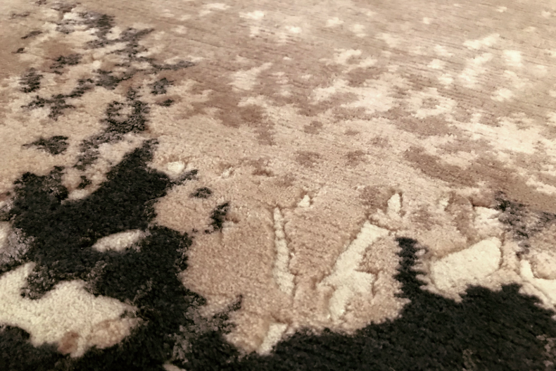 Une infinité de nuances révèle la variation de textures, entre laine et soie pour un tapis tout en relief à l’esprit minéral.